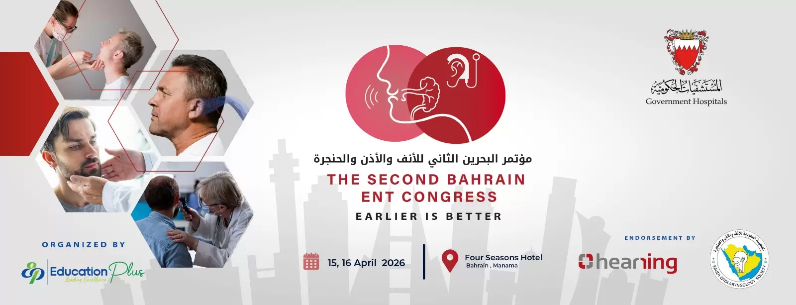 We are thrilled to invite you to a momentous gathering of professionals in the field of Ear, Nose, and Throat medicine It is with great pleasure that we welcome you to Bahrain ENT 2nd Congress that it will be held on April 15th and 16th, 2026, at the Four Seasons Hotel, Organized by Education Plus Consultancy.